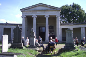Only the Friends' own trained guides are authorised to lead tours in the cemetery; private groups wishing to bring their own guide must ask permission from the Friends.